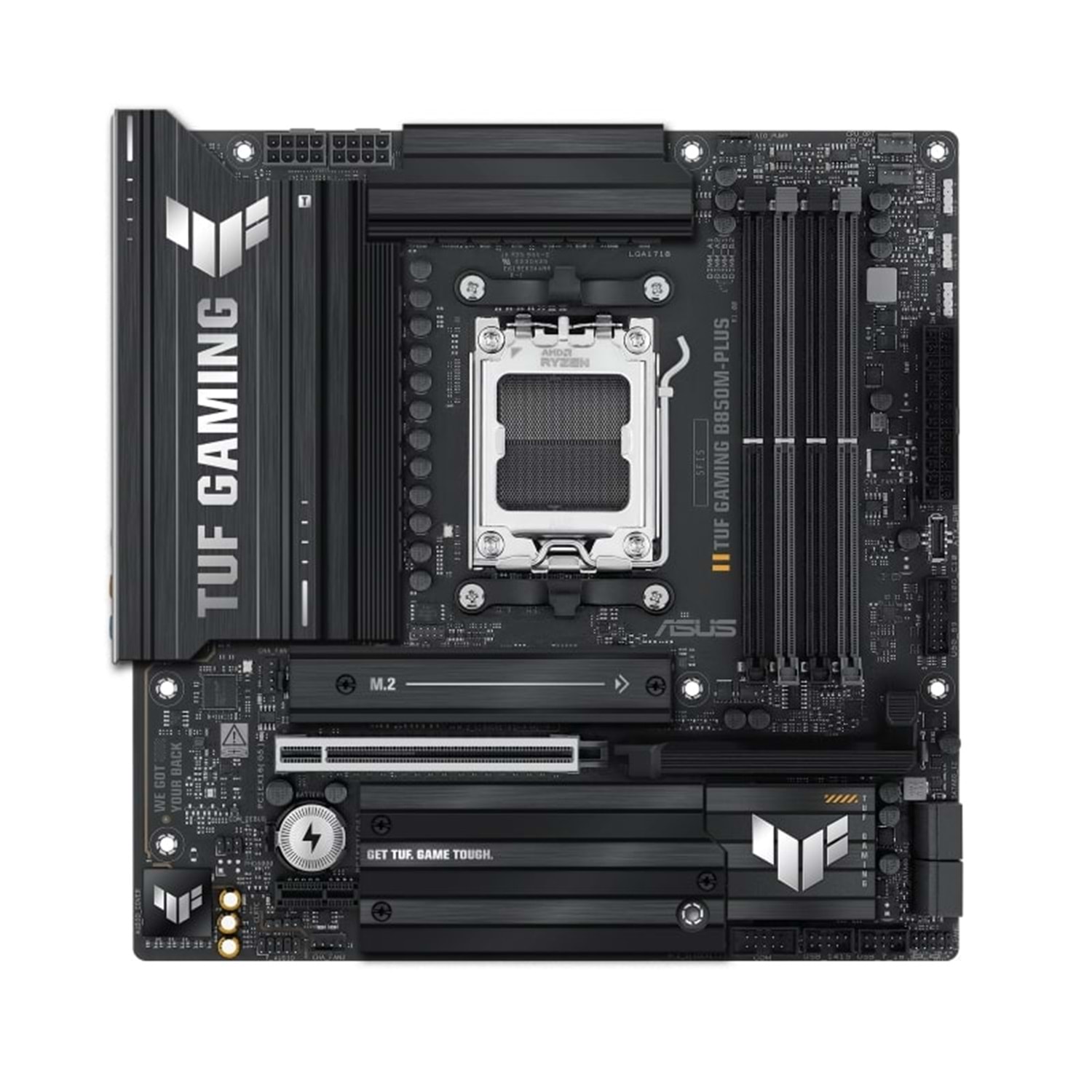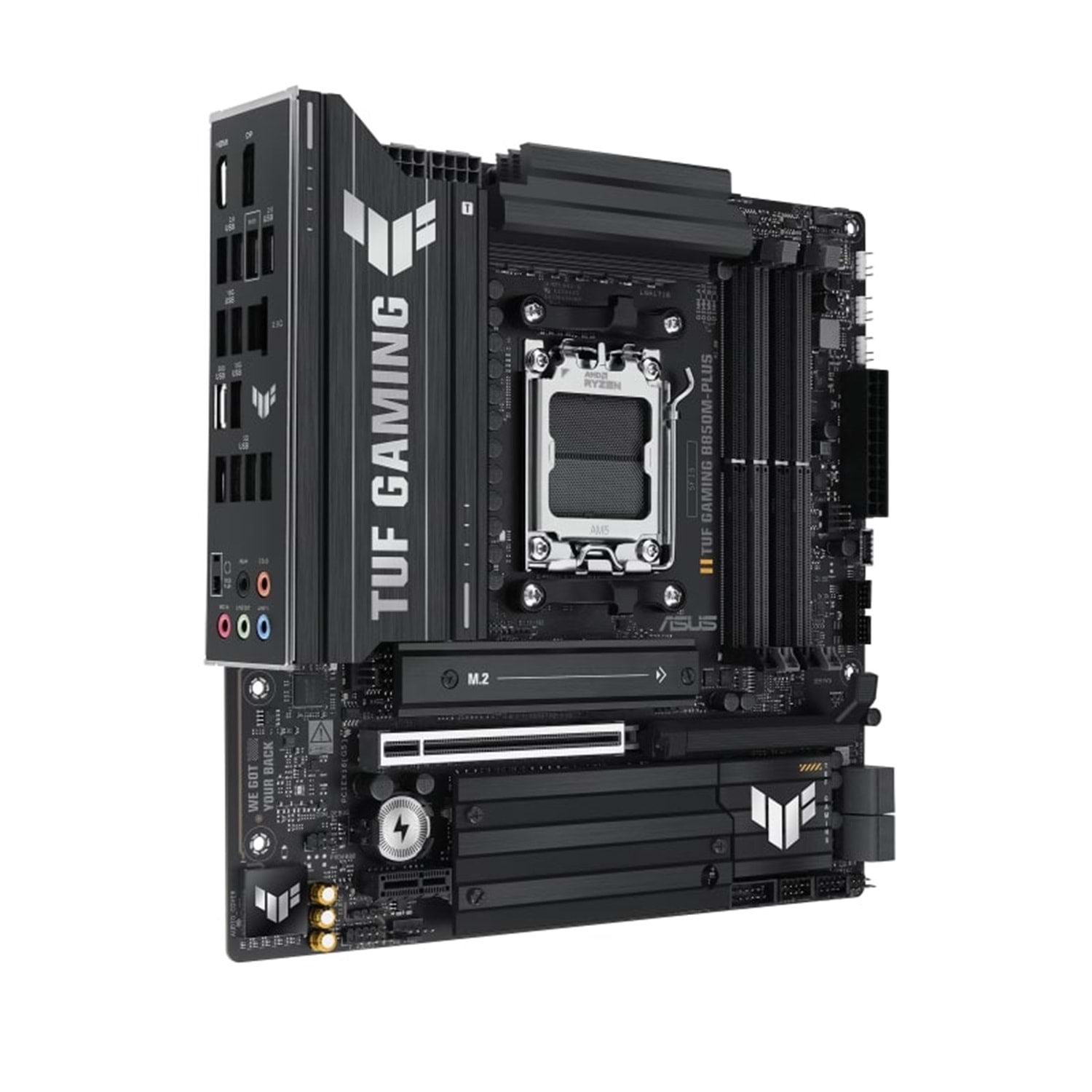 Asus TUF Gaming B850M-Plus AM5 anakart, üst düzey oyun deneyimi ve profesyonel sistemler için geliştirilmiş bir modeldir. AMD B850 yonga seti ve Zen 5 mimarisi desteğiyle, güncel teknolojilere sahip kullanıcıların tüm ihtiyaçlarını karşılar. Micro ATX (mATX) form faktörü ve gelişmiş bağlantı seçenekleri ile hem oyunculara hem de profesyonel kullanıcılara hitap etmektedir.