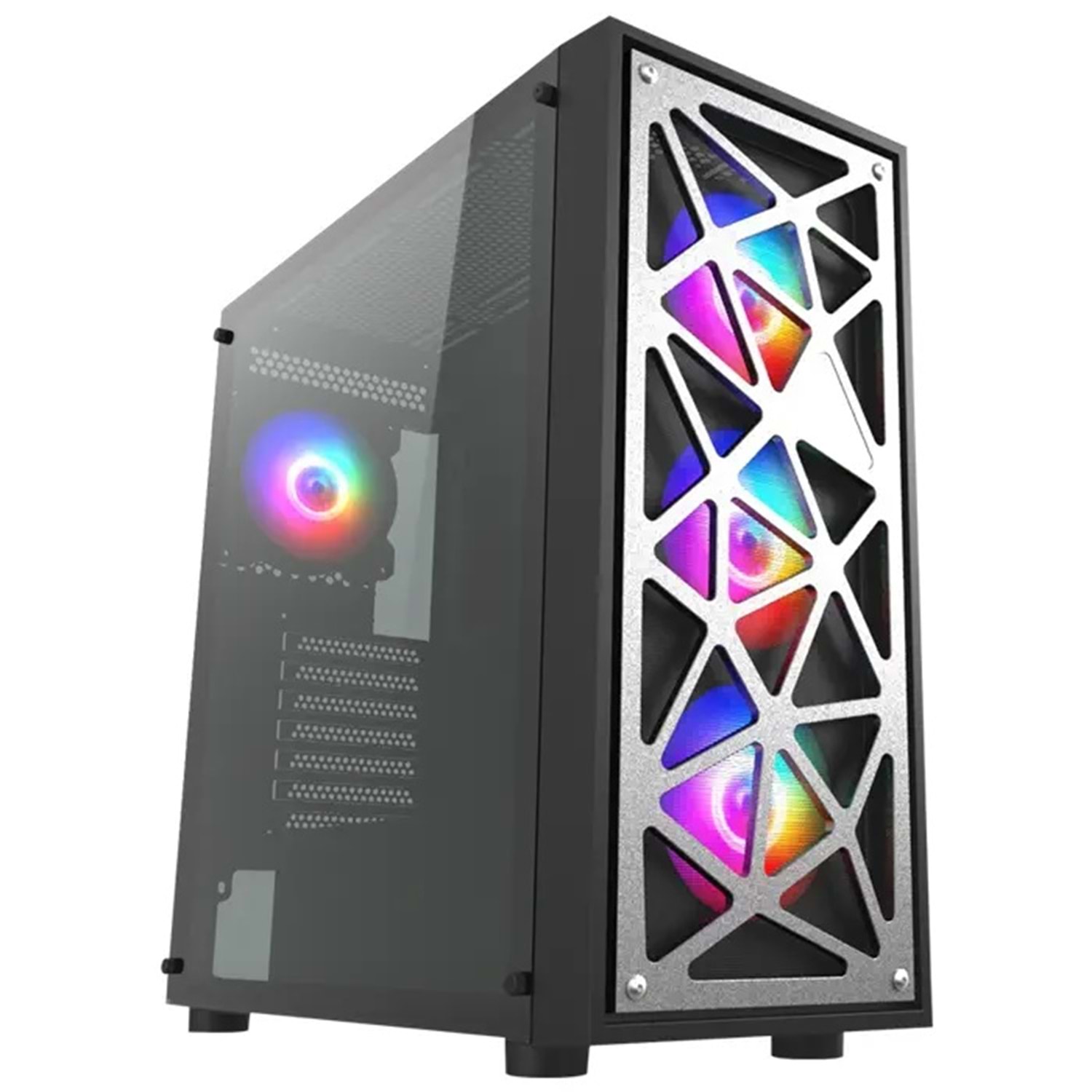 Ön panel de 3x 12cm arka panel de 1x 12cm rainbow RGB fanı ile muhteşem ışıltı ve harika hava akışı sağlar.