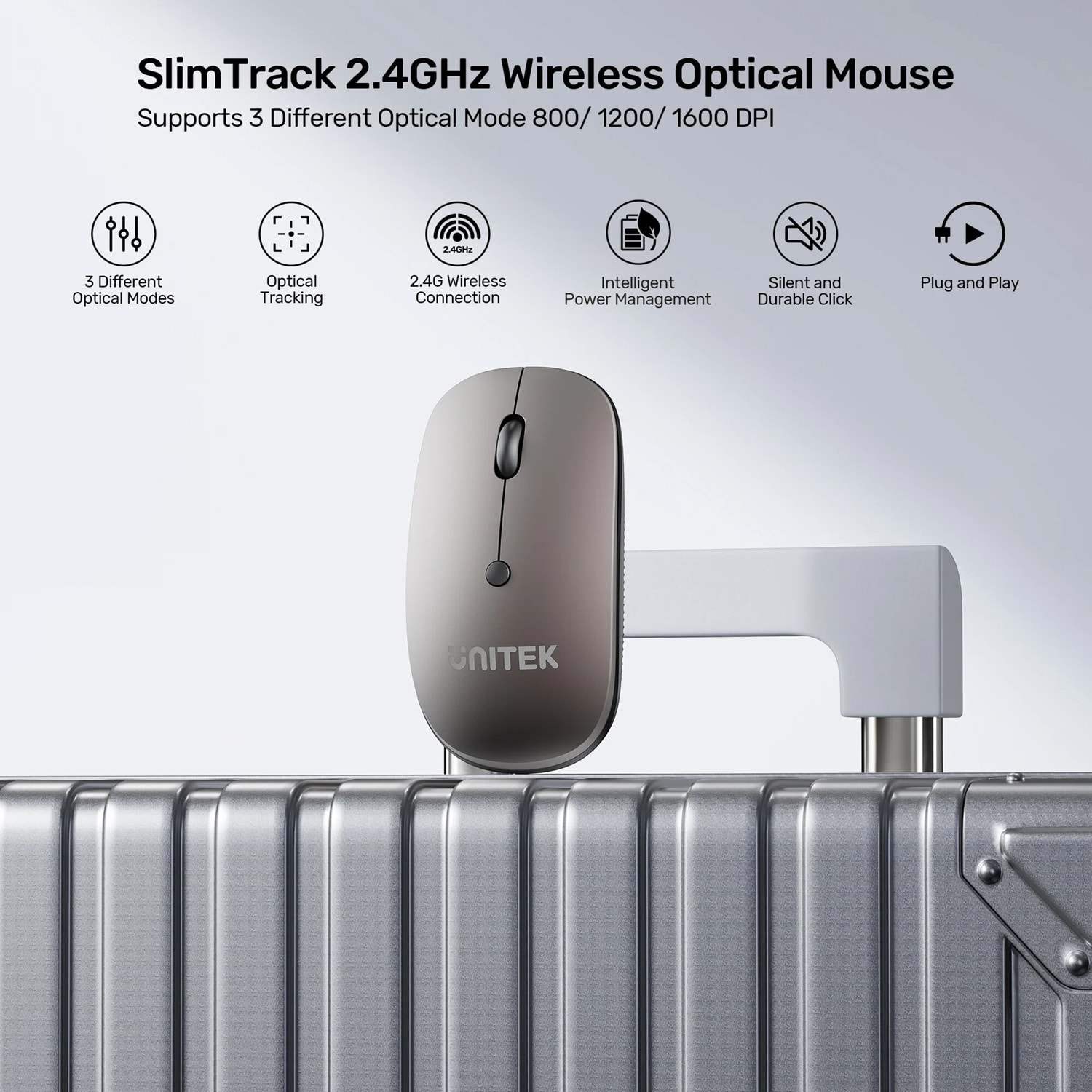 Kararlı 2.4G kablosuz iletimiyle donatılmış UNITEK SlimTrack 2.4GHz Kablosuz Optik Fare, güçlü parazit önleme özelliklerine ve 10 metreye kadar menzile sahiptir. "Tak ve çalıştır" tasarımı, sürücü kurulumuna gerek kalmadan anında bağlantı sağlar.