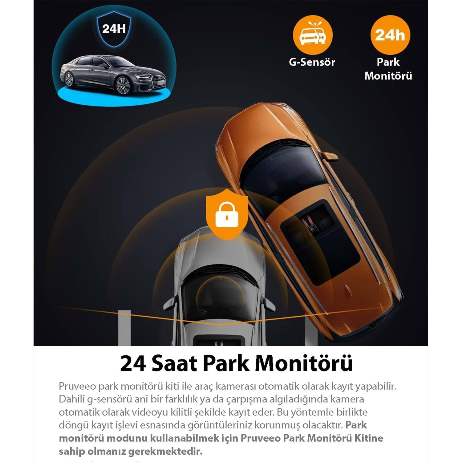 Aracınızı Park Ettiğinizde de İçiniz Rahat Olsun! Pruveeo Park Monitörü Kiti ile Aracınız Hareket veya Darbe Algıladığında Otomatik Olarak Kayıt Yapmaya Başlar. Siz Uzaktayken Bile Aracınızı 24 Saat Boyunca Gözetim Altında Tutar.